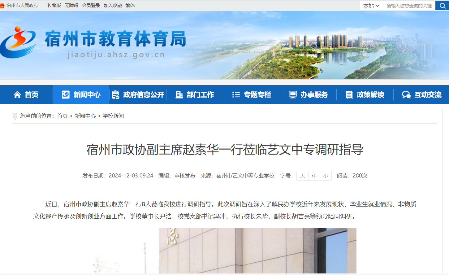 【市教體局】宿州市政協(xié)副主席趙素華一行蒞臨藝文中專調研指導