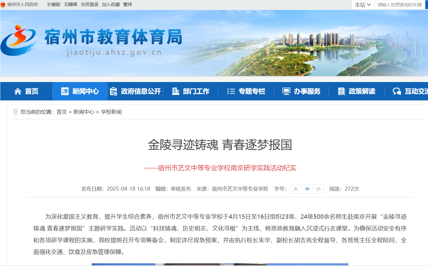 【市教體局】金陵尋跡鑄魂 青春逐夢報國——宿州市藝文中等專業(yè)學(xué)校南京研學(xué)實踐活動紀(jì)實