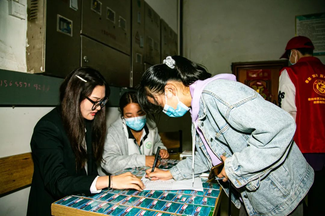 當你走入宿舍門口,你會看見宿舍門口的老師們,同學們可在此處領(lǐng)取校園卡、電卡和遙控器。