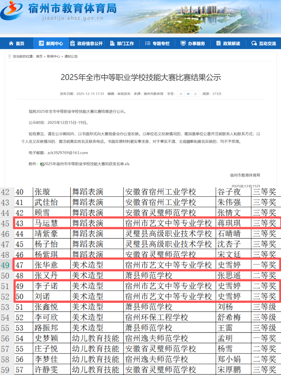 近日,2025年宿州市全市中等職業(yè)學(xué)校技能大賽比賽結(jié)果公示,我校師生憑借出色表現(xiàn),在多個賽項中斬獲佳績。