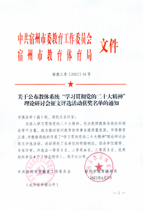 8、2023年4月付振宇和黃秀秀獲得“宿州市優(yōu)秀學(xué)生干部”稱號(hào);沈思軍和張賀獲得“宿州市三好學(xué)生”稱號(hào)